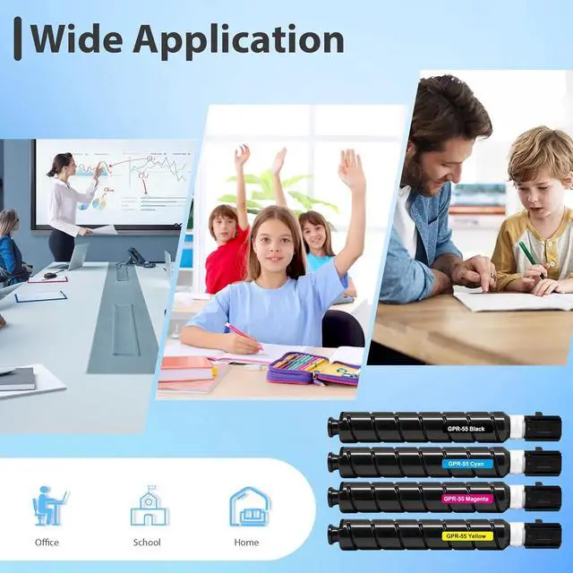 Package Contents 4-Pack GPR-55 GPR55 Toner Cartridge -0481C003 Black Toner Cartridge, 0482C003 Cyan Toner Cartridge, 0483C003 Magenta Toner Cartridge, 0484C003 Yellow Toner Cartridge