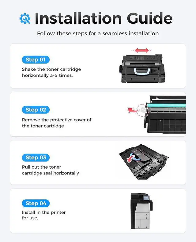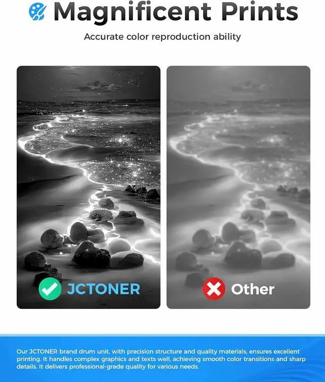 The latest chip version: The JCTONER toner cartridges are equipped with the latest version of built-in chips, ensuring perfect compatibility between each toner cartridge and the printer. This enables you to print efficiently while maintaining stability and reliability, making installation convenient without the need for manual adjustments. All JCTONER toner cartridges have undergone strict quality testing and have obtained ISO9001 certification. High-quality toner cartridges can meet the demand for high printing volume. The fine toner ensures clear and stain-free printing results and extends the lifespan of the printer. You can purchase with confidence.