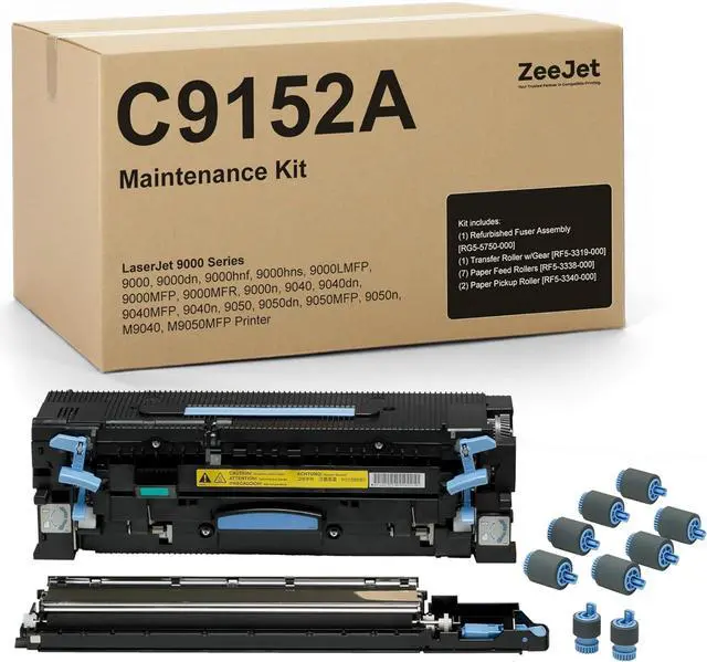 • Product Name: Zeejet C9152A Fuser Maintenance Kit Replacement for HP C9152A Maintenance Kit, Includes RG5-5750 Fuser, Transfer Roller Assembly & Tray 1-4 Rollers, 110V