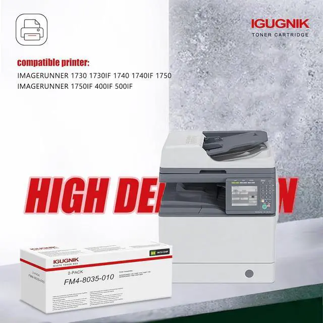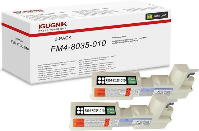 Quality Insurance: IGUGNIK replacements for Canon FM4-8035-010 black Waste Toner Box are made in an ISO 9001, ISO 14001 certified facility to ensure they maintain the highest levels of quality and durability.