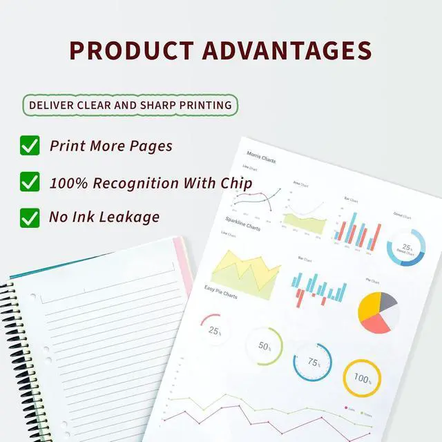 Smart Chip: Equipped with smart chip,Strong recognition,Long-lasting and and durable Effectively improve the durability and stability of the ink cartridge!