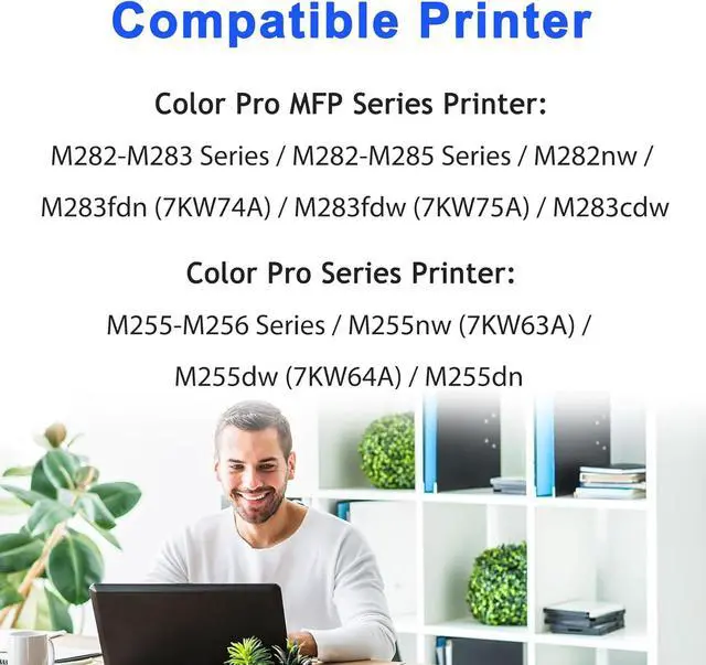 Printer Compatibility: Compatible with HP Color LaserJet Pro MFP M283fdw, Color LaserJet Pro MFP M283cdw, Color LaserJet Pro MFP M283fdn, Color LaserJet Pro MFP M282nw, Color LaserJet Pro M255dw, Color LaserJet Pro M255nw M255dn , M283 M282-M285 M255 M256 Series Printers