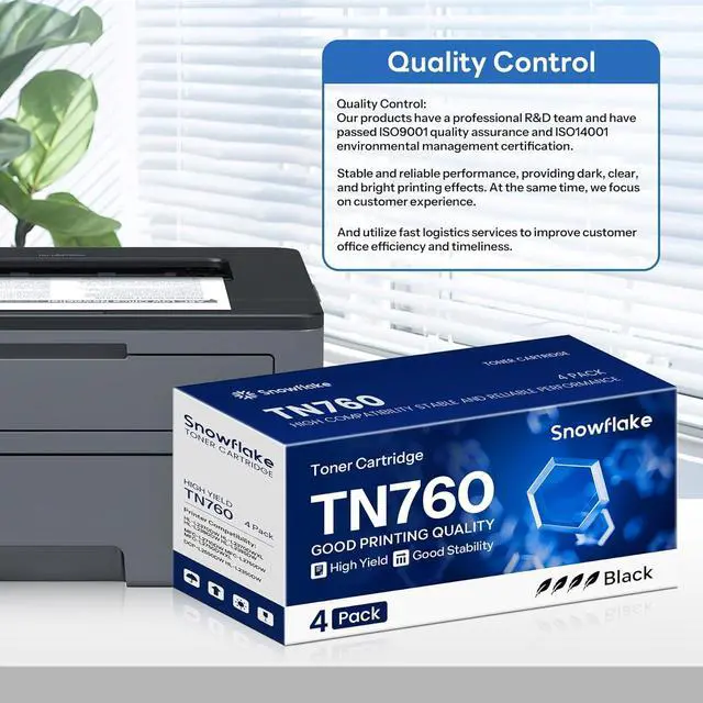 The package contains : 4-Pack TN-760 TN760 High Yield Black Toner Cartridge.