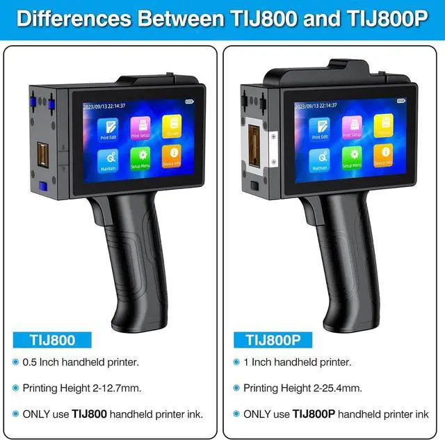 5 Inch Capacitive Touch Screen & Ergonomic Design TIKTONER TIJ800 handheld printer have a 5-inch capacitive touch screen, which is very intuitive to use, with clear image display and more convenient operation. TIKTONER handheld inkjet printer also has ink cartridge detection identification and nozzle cleaning functions as well as protective cover design for easy care and maintenance.