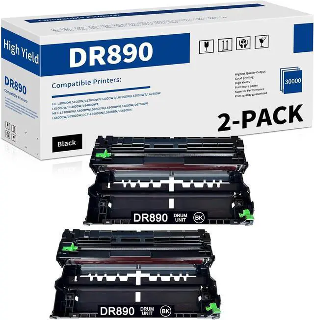 Package Contents: 2 Pack High Yield DR890 Black Drum Unit Compatible Replacement for Brother DR-890
