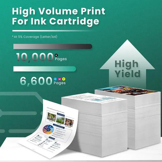 Page Yield: 10,000 Pages per Black, 6,600 Pages per 980X Color Ink Cartridge at 5% coverage (Letter/A4)