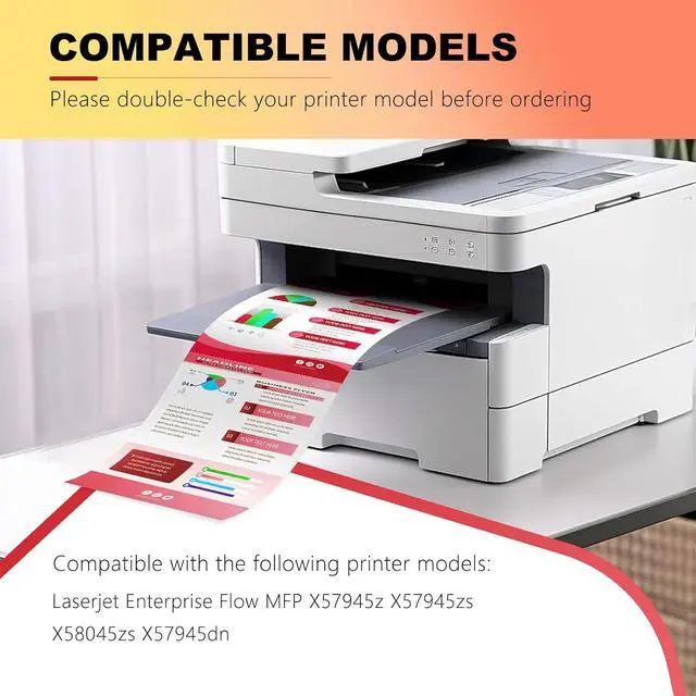 PERFECT PRINTER COMPATIBILITYEngineered for HP Laserjet Enterprise Flow MFP X57945z X57945zs X58045zs X57945dn series. Delivers clear, professional text and graphics right out of the box.
