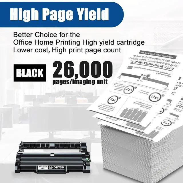 High Page Yield: Per DR-730 DR730 Black Drum Unit can print 13,000 Pages at 5% coverage (Letter/A4)