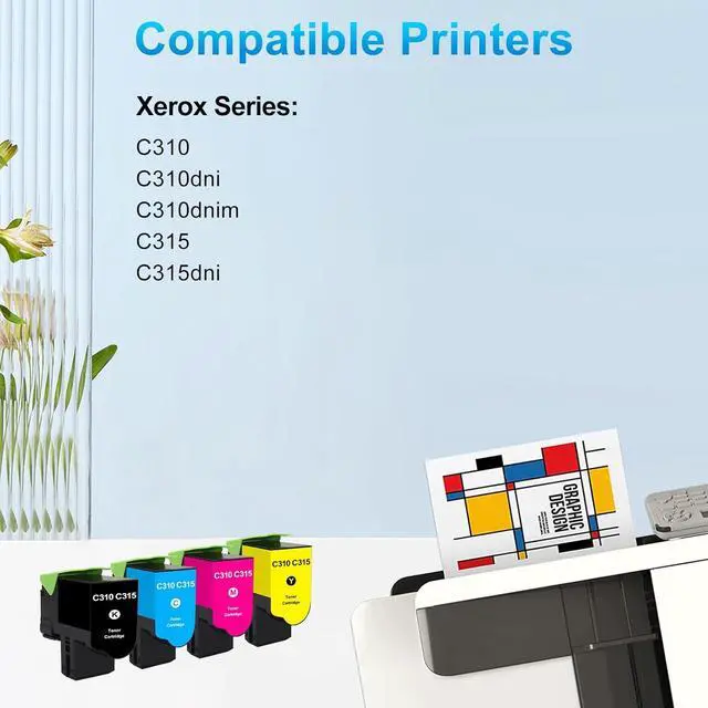 High Pages Yield: Up to 3000 pages for xerox c315 c310 black toner cartridge, up to 2000 pages per xerox c315 c310 color toner (5% coverage at Letter/A4)