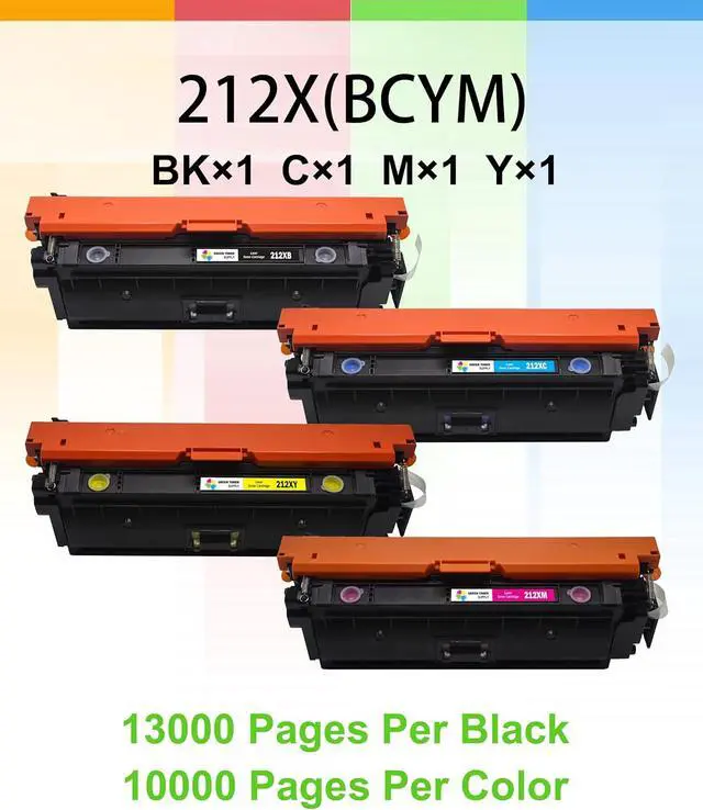Package Including: (4 Pack, Black + Cyan + Magenta + Yellow) Green Toner Supply Compatible 212X Toner Cartridge Color Set Replacement for HP W2120X W2121X W2122X W2123X Toner Cartridge