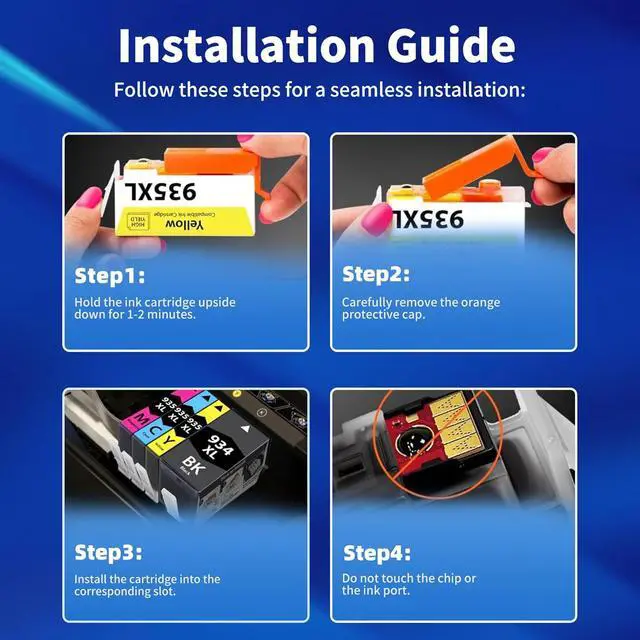 Advanced Chip: Engineered with our latest intelligent chip, the 934XL/935XL replacement cartridge delivers flawless compatibility with All printer series. Experience vibrant, high-definition prints with absolute consistency. This plug-and-play solution ensures zero compatibility alerts and uninterrupted performancemaking printing truly hassle-free