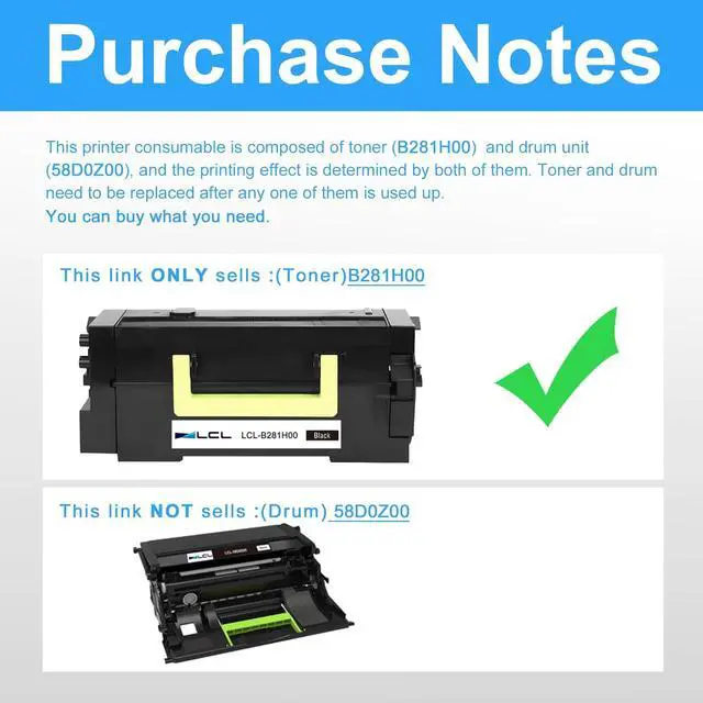 Reliable Quality: LCL B281H00 cartridge uses high quality toner, toner particle size distribution, good mobility, high transfer rate, resulting in a clear image and high gloss print effect; Printing efficiency is high, waste powder rate is low, so as to ensure sufficient page yield.