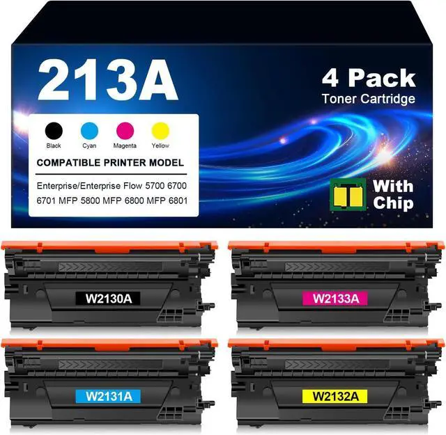 Package Contents: 4 Pack (1BK+1C+1M+1Y) 213A Toner Cartridges