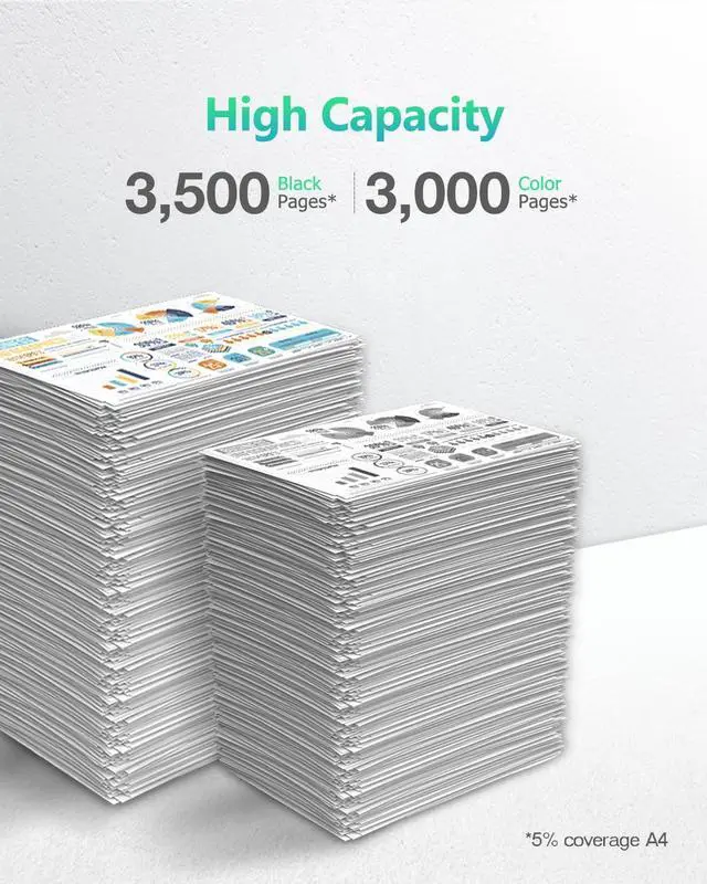 Page Yield: Approximately 3,500 pages per black toner, 3,000 pages per color toner at 5% coverage of A4/letter.