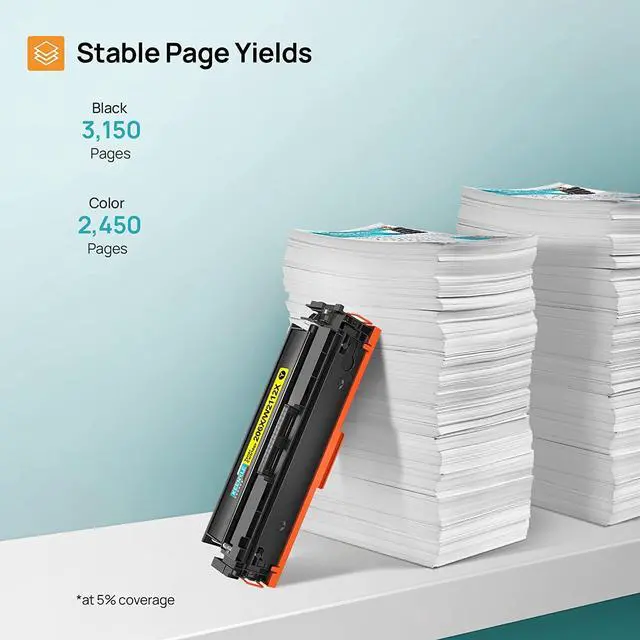 206X Toner Cartridge High Yield 4 PackUp to 3,150 pages for per black HP 206X toner cartridge, Up to 2,450 pages for per color HP 206X toner cartridge (at 5% coverage).