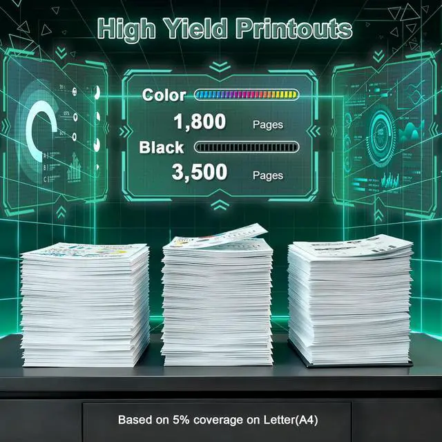 High Page Yield: Get up to 3,500 pages per black toner and 1,800 pages per color toner at 5% coverage on A4-size paper