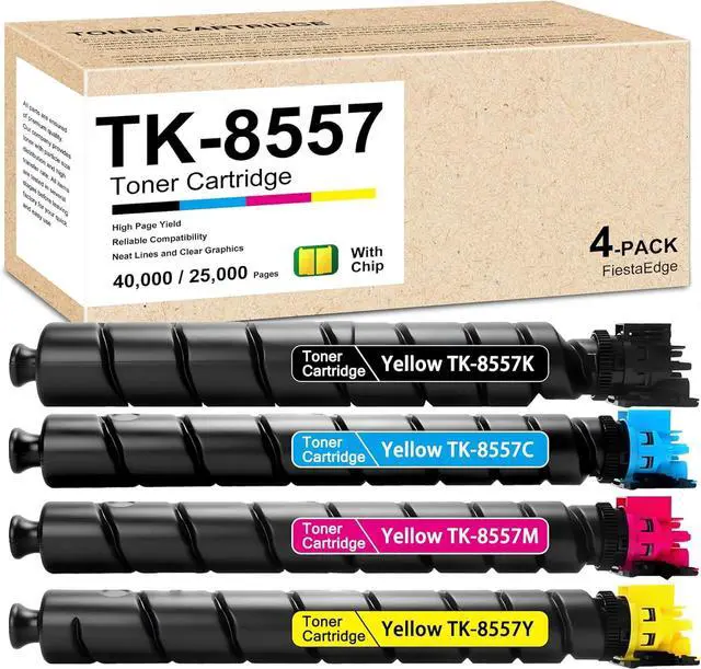 [4-Pack TK-8557 TK8557 Toner Cartridge Includes]: TK-8557K black toner cartridge x 1, TK-8557C cyan toner cartridge x 1, TK-8557M magenta toner cartridge x 1, TK-8557Y yellow toner cartridge x 1