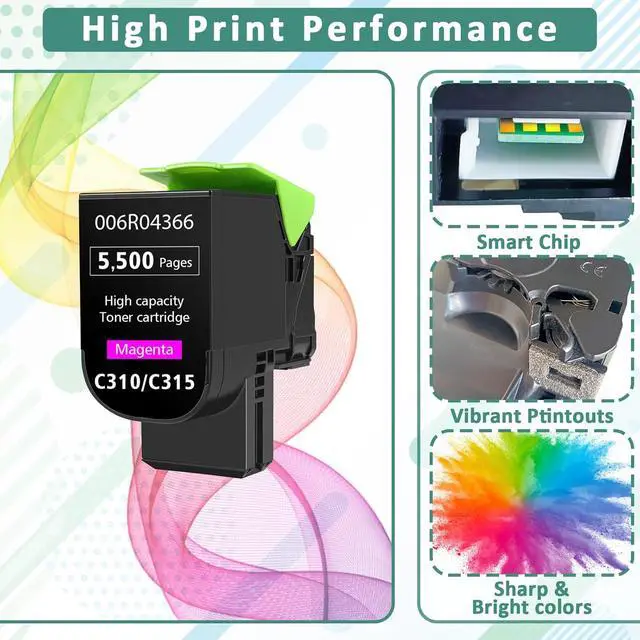 Compatible Printer:C315 toner cartridge Compatible for Xerox C310 C310DNI color printer and C315 C315DNI color multifunction printer.
