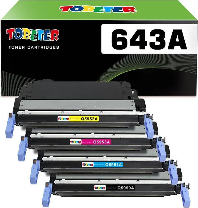 • ToBeter 4700dn Toner: ToBeter High Yield 643A Toner Replacement For HP 643A 4700 4700dn Toner Cartridge 4-Pack KCYM (Q5950A Q5951A Q5952A Q5953A, 11K/10K)