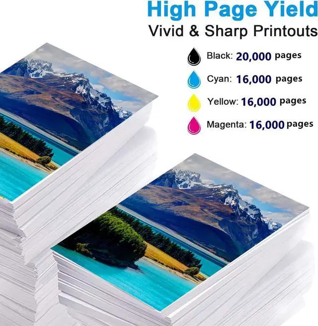High Page YieldEstimated 20,000 pages for 990X black ink cartridge and 16,000 pages for per 990X color ink cartridge at 5% coverage of A4 / Letter.