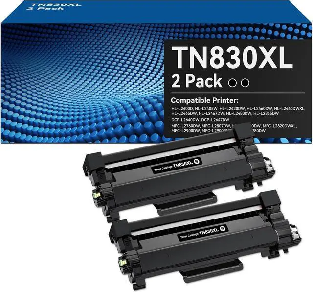 W.L.M TN830xl toner cartridge 2 pack compatible with TN830 xl black toner cartridge Compatible with Brother HL-L2460DW, HL-L2405W, DCP-L2640DW, HL-L2400D, MFC-L2820DW, HL-L2420DW, HL-L2460DWXL, HL-L2465DW, HL-L2467DW, HL-L2865DW, HL-L2480DW, DCP-L2647DW, MFC-L2760DW, MFC-L2807DW, MFC-L2820DWXL, MFC-L2900DW, MFC-L2900DWXL, MFC-L2980DW printer