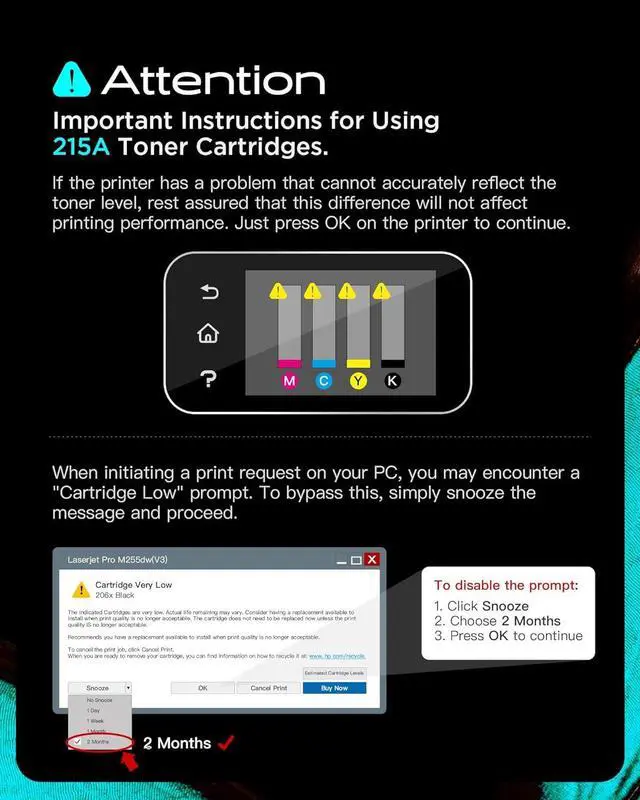 Premium Quality: Elevate your printing with iNKPAD. Our 4-pack high-yield 215A toner cartridges, along compatible with HP 215A cartridges, deliver sharp text and vibrant colors, raising the bar for print quality standards.