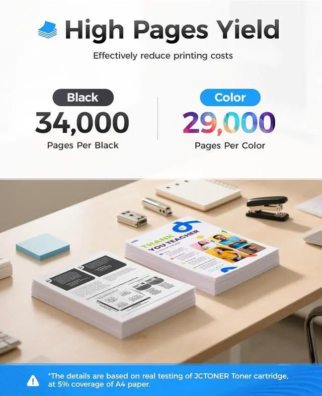 The latest chip version: The JCTONER toner cartridges are equipped with the latest version of built-in chips, ensuring perfect compatibility between each toner cartridge and the printer. This enables you to print efficiently while maintaining stability and reliability, making installation convenient without the need for manual adjustments. All JCTONER toner cartridges have undergone strict quality testing and have obtained ISO9001 certification. High-quality toner cartridges can meet the demand for high printing volume. The fine toner ensures clear and stain-free printing results and extends the lifespan of the printer. You can purchase with confidence.