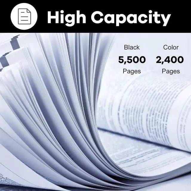 Page Yield: 5,500 pages per black, 2,400 pages per color Toner Cartridge at 5% coverage of Letter/A4 paper