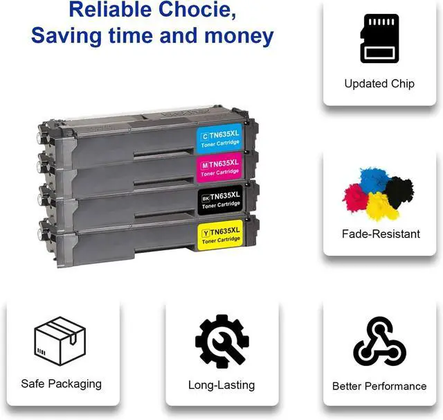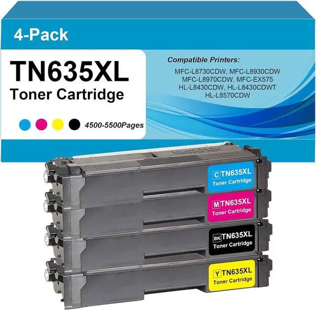 Package Contents: TN635XL Black Toner x1TN635XL Yellow Toner x1TN635XL Cyan Toner x1TN635XL Magenta Toner x1