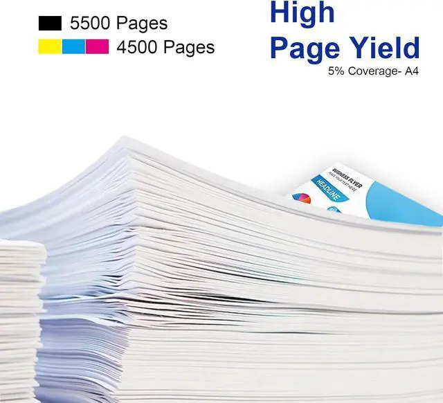 High Yield: Black up to 55,00 Pages Yield; Color up to 45,00 Pages Yield at 5% Average Coverage