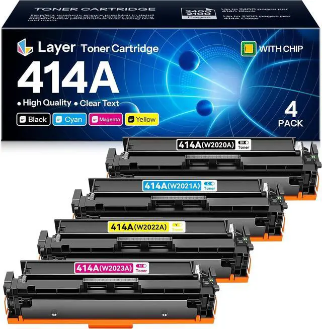 Product Packaging Content:414A Toner Cartridges 4 Pack( 1 x W2020A black toner, 1 x W2021A cyan toner, 1 x W2022A yellow toner, 1 x W2023A magenta toner )