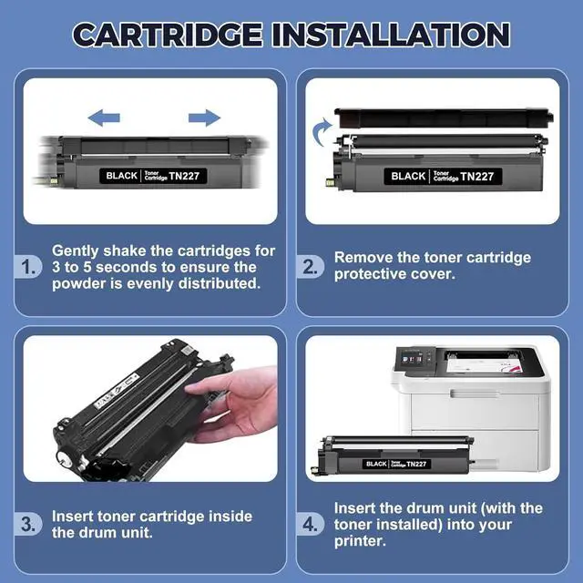 Upgrade your printing experience: Our high performance TN227 TN223 toner cartridges engineered for reliability and affordability. Whether youre printing school projects, professional reports, or cherished family photos, these toner cartridges deliver consistent results without streaks, smudges, or fading.