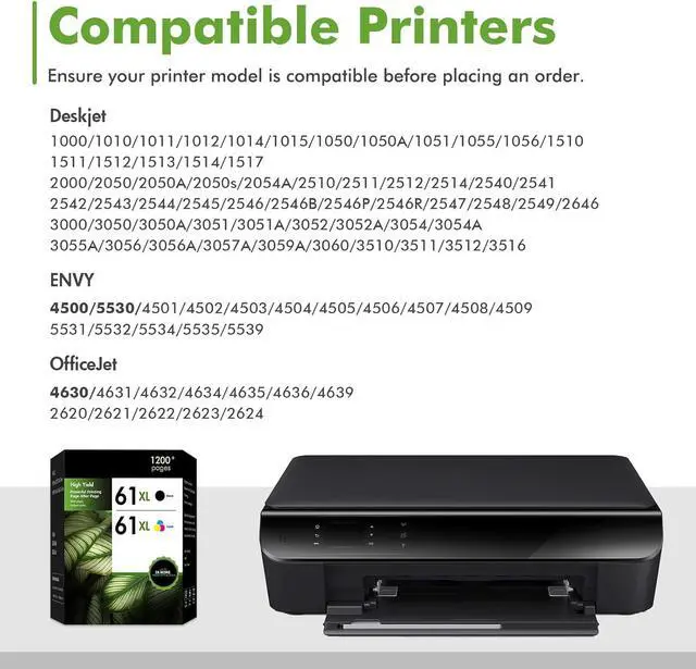 Included: Tonassy compatible for 61XL ink cartridges combo pack and compatible for 61xl ink cartridges black and color (1 × 61XL Black, 1 × 61XL Tri-color