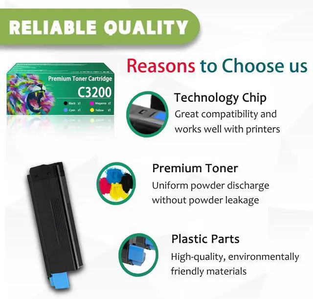 Our Advantages: C3200 toner cartridge uses premium toner, with fine particles, low scrap rate, and no ink leakage, ensuring sufficient number of printed pages, high color saturation, and clearer color printing, creating a more realistic creation for you and your eyes visual effects
