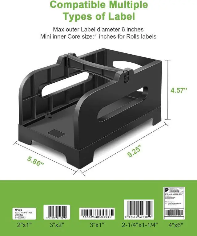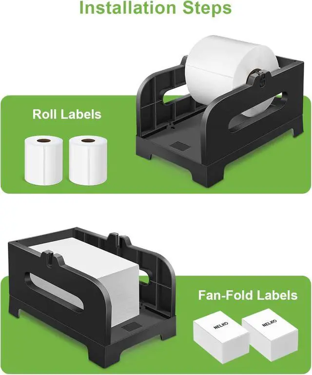 Support Most LabelsThe label holder compatible with both rolls and Fan-Fold (stack) labels. NELKO Label Holder support Max label width 5 inches; Max outer Label diameter 6 inches. Mini inner Core size:1 inches for Rolls labels.
