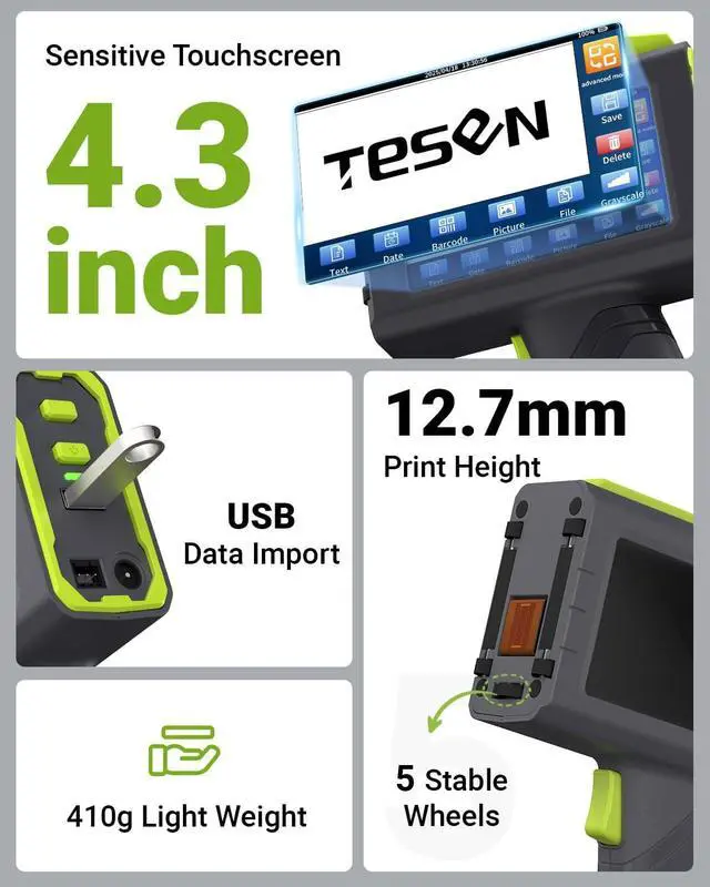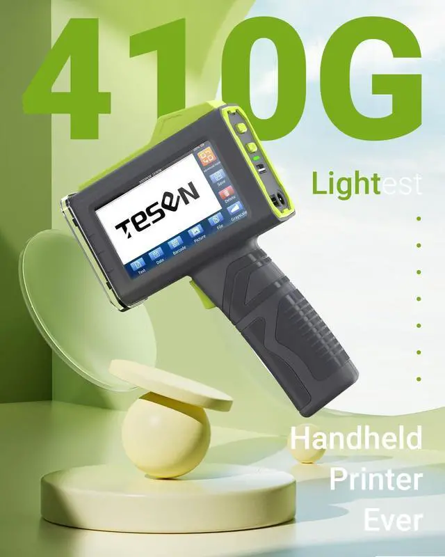 Lightweight and Ergonomic Design: Weighing only 410g, the Tesen hand held printer is perfect for portable use. Its 4.3-inch HD capacitive touchscreen allows for easy operation, while the ergonomic handle is designed to reduce hand fatigue during prolonged use, making it ideal for extended tasks.