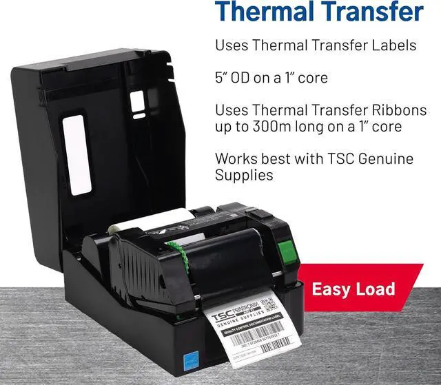 Ribbon Versatility: The printer will take either 72-meter or 110-meter ribbon on a 1/2 core or a 300-meter ribbon on a 1 core, allowing customers to use whichever supply of ribbons they have available.
