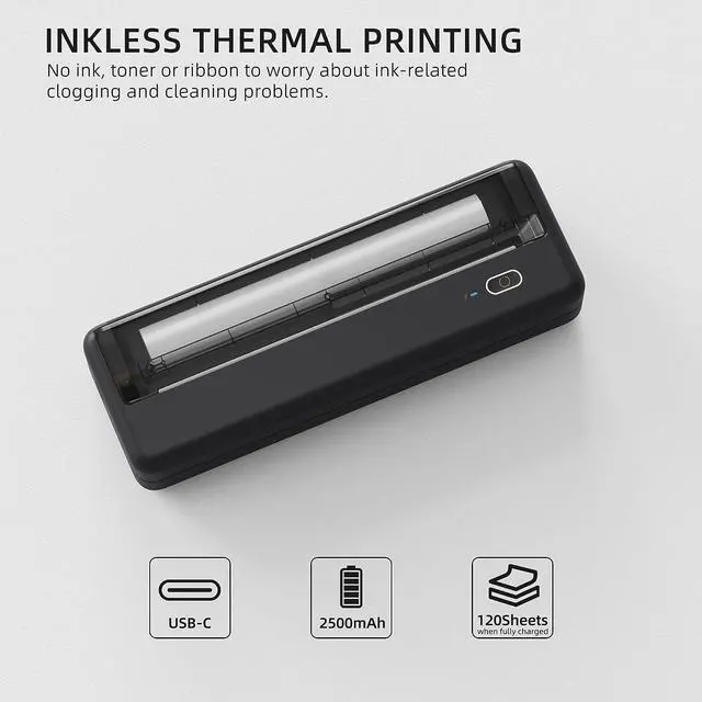 Cost-Effective Inkless Thermal Printing Experience true inkless printing with the inkless printer. Utilizing advanced thermal technology, this thermal printer eliminates the need for ink or ribbonssimply load thermal paper to produce crisp documents instantly. Perfect for home offices and on-the-go printing, the mobile printer saves you time and money while delivering quality results.