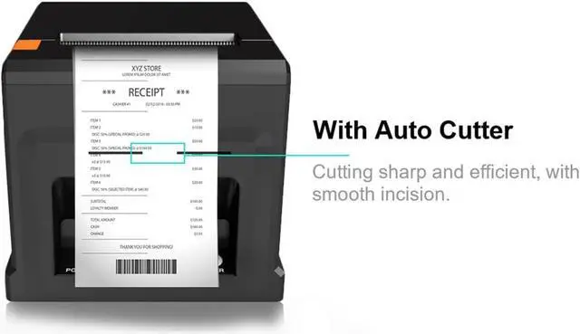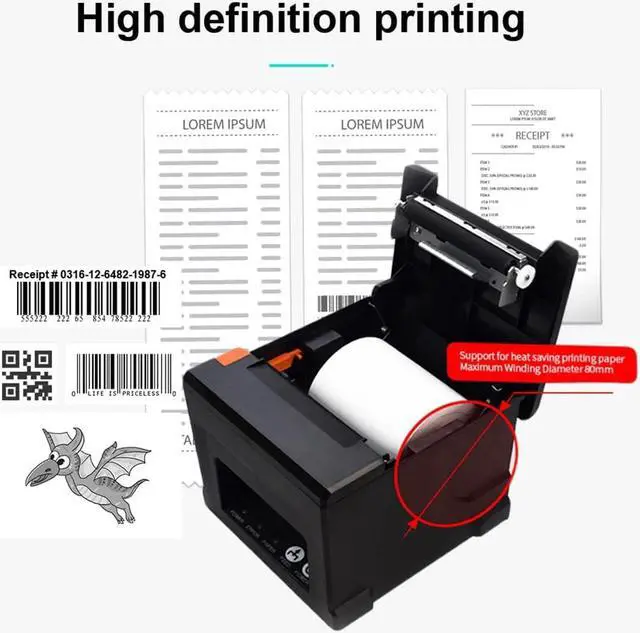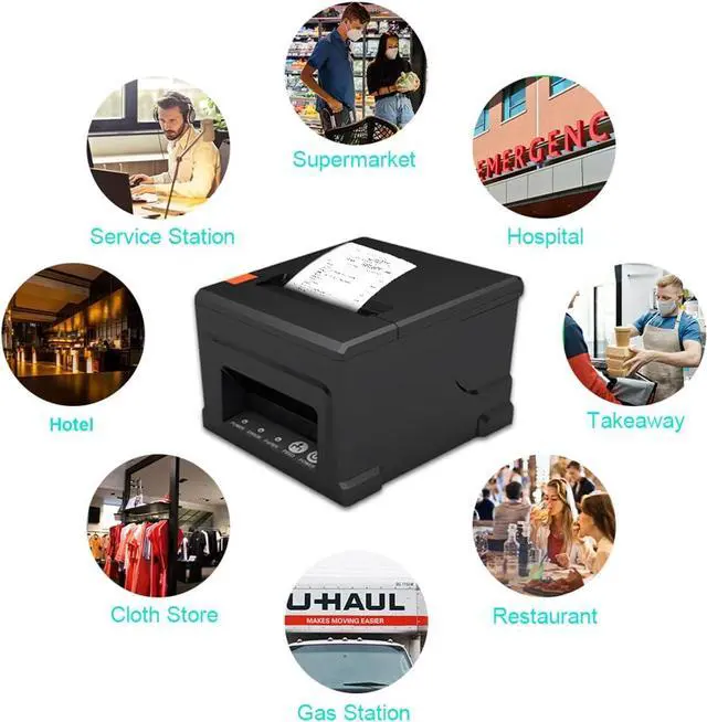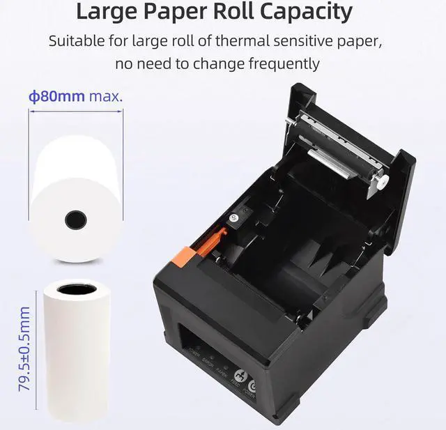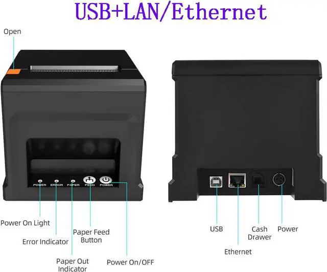 [with U disk] with U DISK in pacakge,(U disk include driver, SDK, English using manual, instruction for how to install diver, video) ,USB +LAN/Ethernet Interface,With Auto cutter function,cut paper easily,80mm POS kitchen receipt printer [Fast and Easy printing] it's compatible with WIN 7/8/10/11/XP/2000, MAC LINUX ,this printer has an advanced print head with an auto cutter that prints at a speed of 300mm/sec. It does not require any ribbon or cartridge, and has a one-button open cover and a large paper warehouse for easy use and maintenance.