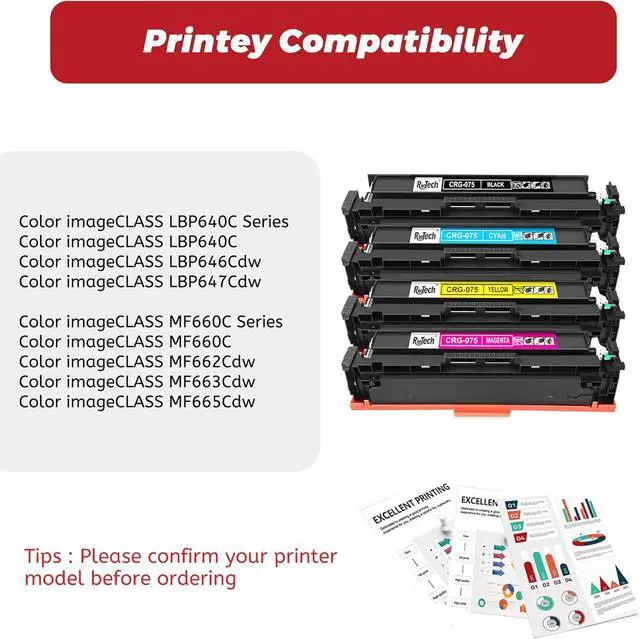 Toner Level Tracking TechnologyEach for canon 075 toner cartridge set is equipped with smart chip that allows you to monitor current toner level and order a replacement pack in time