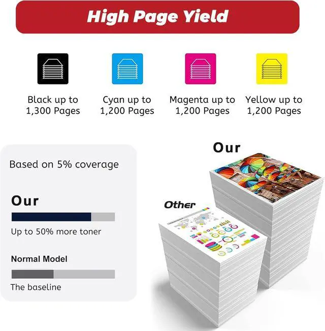 High Page Yield- Up to 1,300 pages per canon 075 black toner cartridges, prints up to 1,200 pages per 075 color toner cartridges at 5% coverage