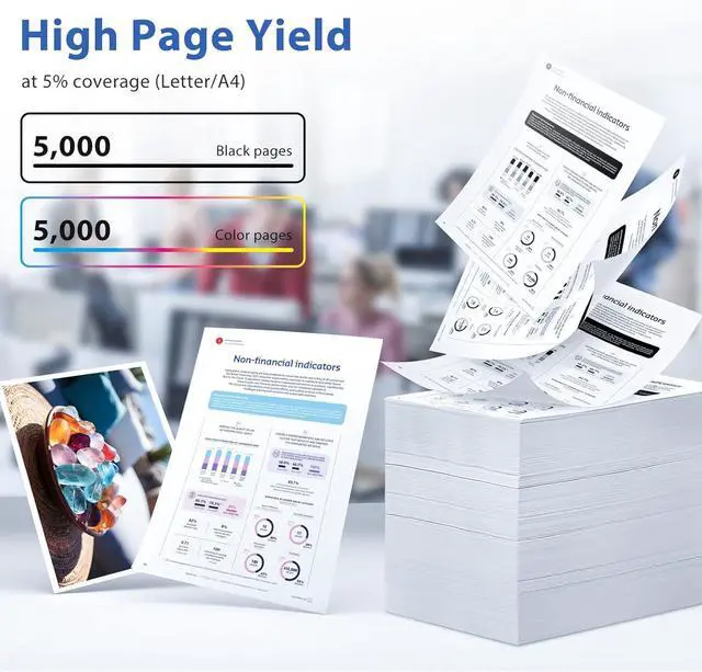 [T902 T902XL Ink Cartridge Page Yield]: Approximately 5,000 pages per T902XL black toner cartridge and 5,000 pages per T902XL color toner cartridge (at 5% coverage)