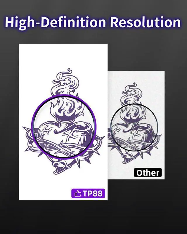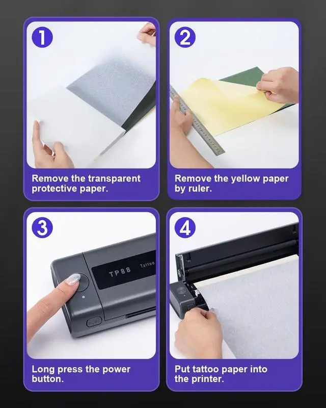 Anti-wrinkle function - This feature is a unique design of the TP88 thermal transfer printer. When you print from your phone, the tattoo paper will have square shaped lines on both sides for fixing the paper, so that you can avoid the tattoo paper from rolling together. Making the printing experience more Smoother and silkier