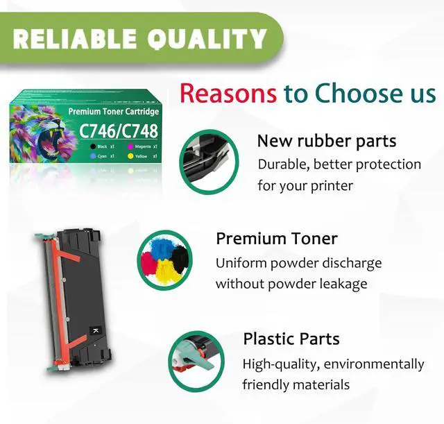 Our AdvantagesC746 C748 toner cartridge uses premium toner, with fine particles, low scrap rate, and no ink leakage, ensuring sufficient number of printed pages, high color saturation, and clearer color printing, creating a more realistic creation for you and your eyes visual effects