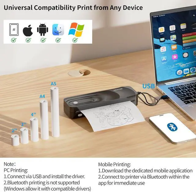 Multi-Size Thermal Paper Support Use five different paper sizes (US Letter, A4, 4.33'', 3.14'', 2.08'') and three formatsroll, fold, or standard thermal paper. Great for taking notes, exams, documents, crafting, and DIY projects. Versatility meets convenience.