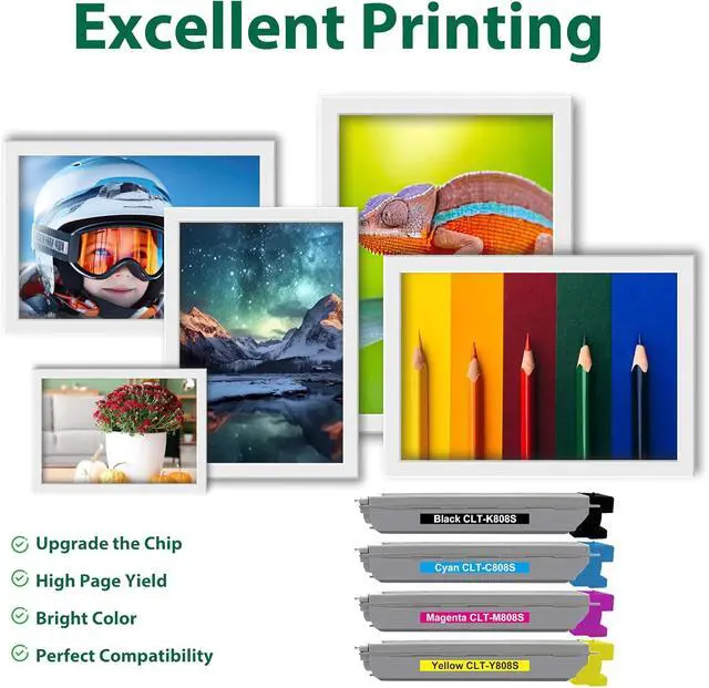 Remanufactured CLT-808S Toner Cartridge - CLT-808S toner cartridges with 4 pack (1x Black/CLT-K808S, 1x Cyan/CLT-C808S, 1x Magenta/CLT-M808S, 1x Yellow/CLT-Y808S), upgraded materials and chip bring the perfect printing experience