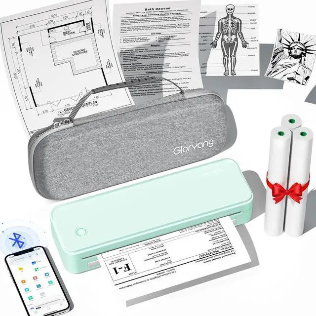 Inkless Printing - Gloryang mobile printer delivers cost-effective and Inkless solutions for everyday printing. Utilizing advanced thermal technology eliminates the need for ink, toner, and ribbons. The package includes a printer, 3 rolls of thermal printing paper(one roll prestocked in the printer), a carrying case, a charging cable, instruction manual, and a guide card, etc. It is the most cost-effective choice. Only compatible with Gloryang thermal paper, not regular standard paper or inkjet paper!!
