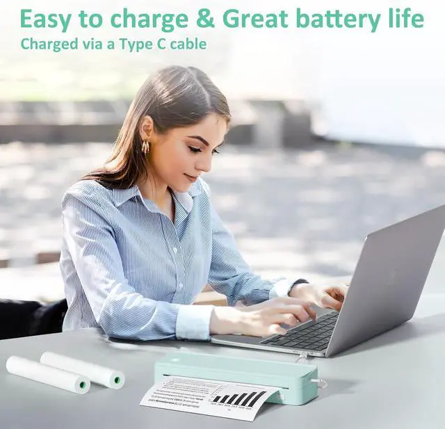 High-Quality Printing & Long-lasting Battery - This resolution of this printer is 203DPI. Equipped with 2 built-in 2600mAh batteries, it offers up to 3 hours of continuous printing and 360 sheets on a single charge. (Only Print in Black, not print in color!!