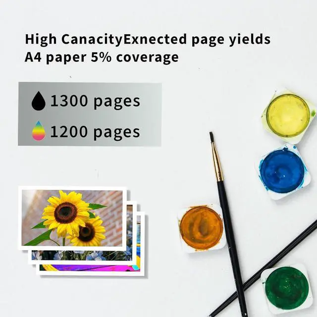 Highest Page Yield: Up to 1300 pages per black Ink cartridge and 1200 pages pages per color Ink cartrldge (5% coverage) A4 paper.
