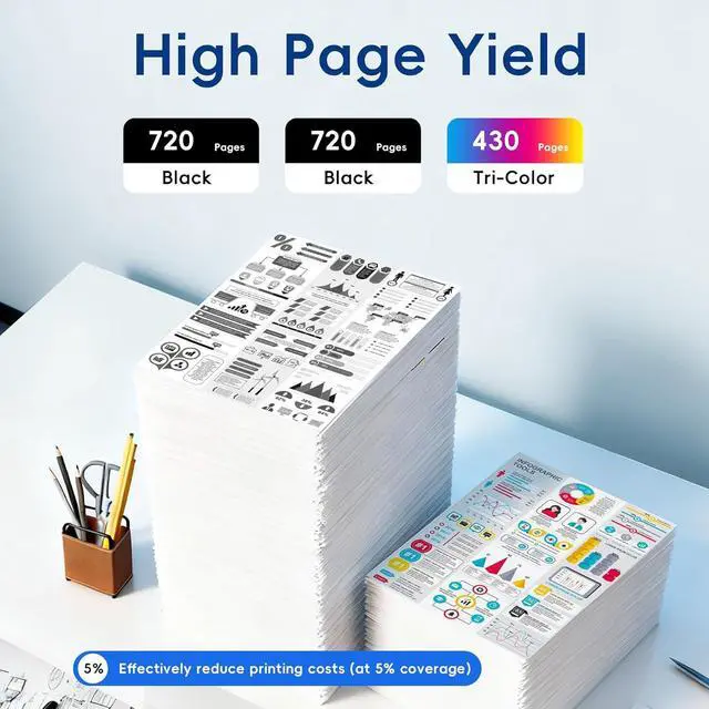 High Page Yield: 430 pages per color 61XL ink cartridges, 720 pages per black 61XL ink cartridges (Letter A4, at 5% coverage)
